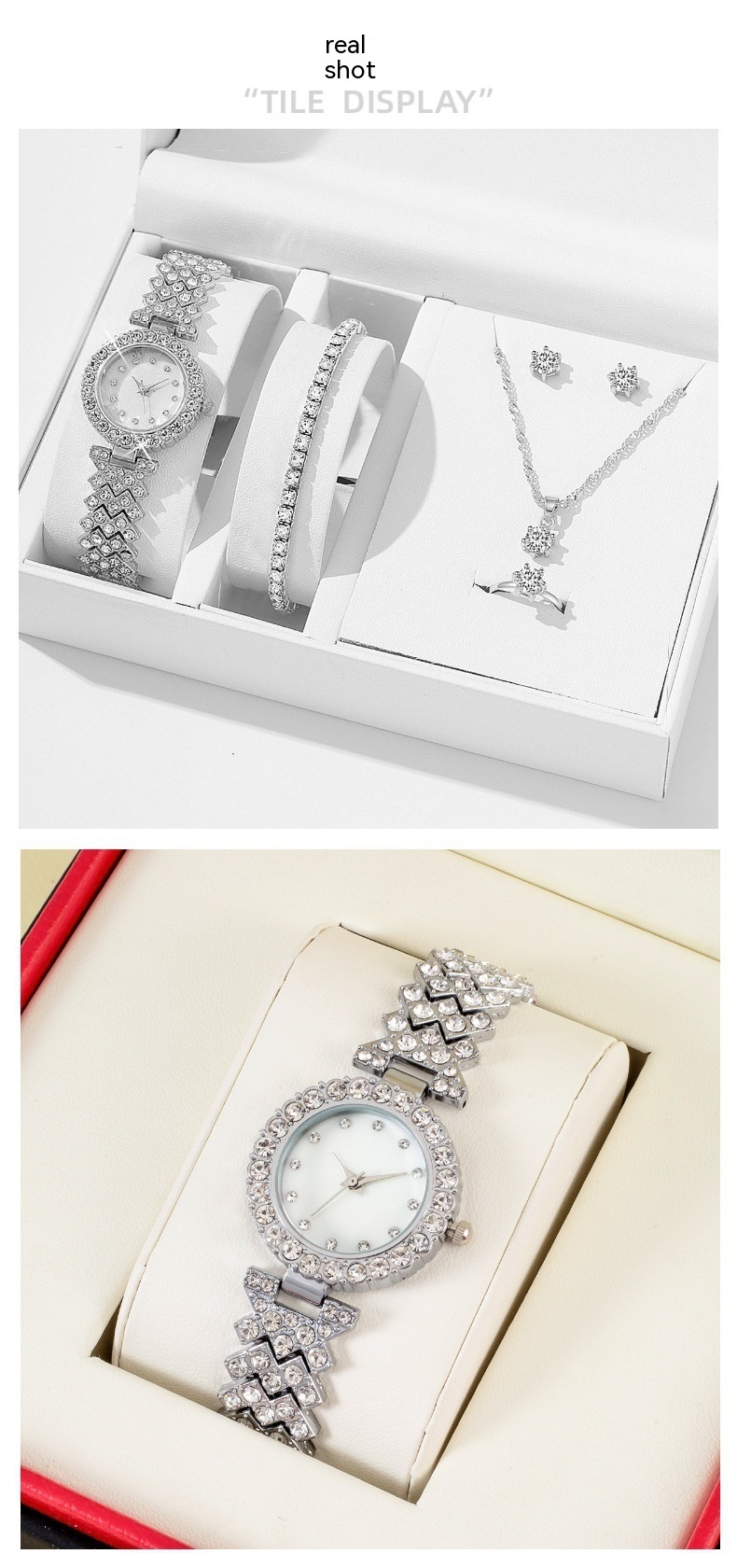 Bracelet + necklace + earrings*1pair + ring +watch x1pc