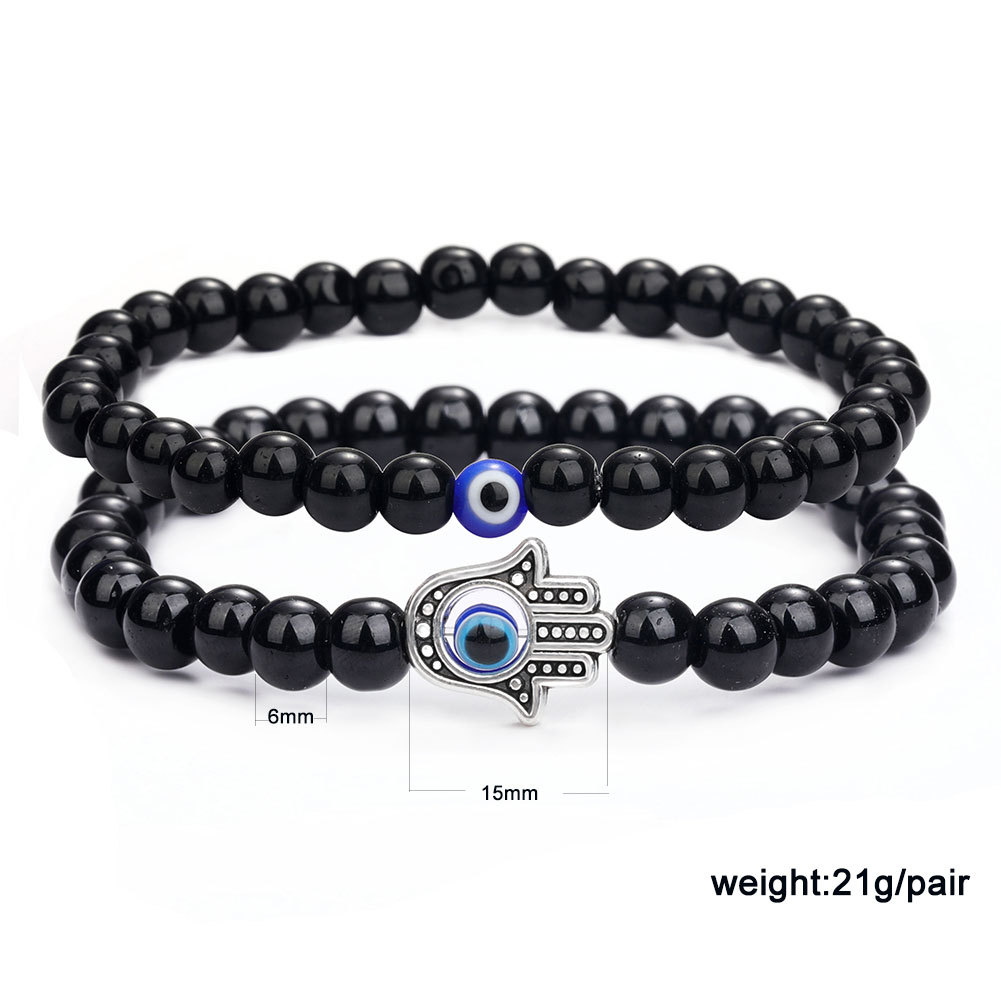 6cm Black Glass White Turquoise Colored Glaze Beaded Devil’s Eye Bracelet Set