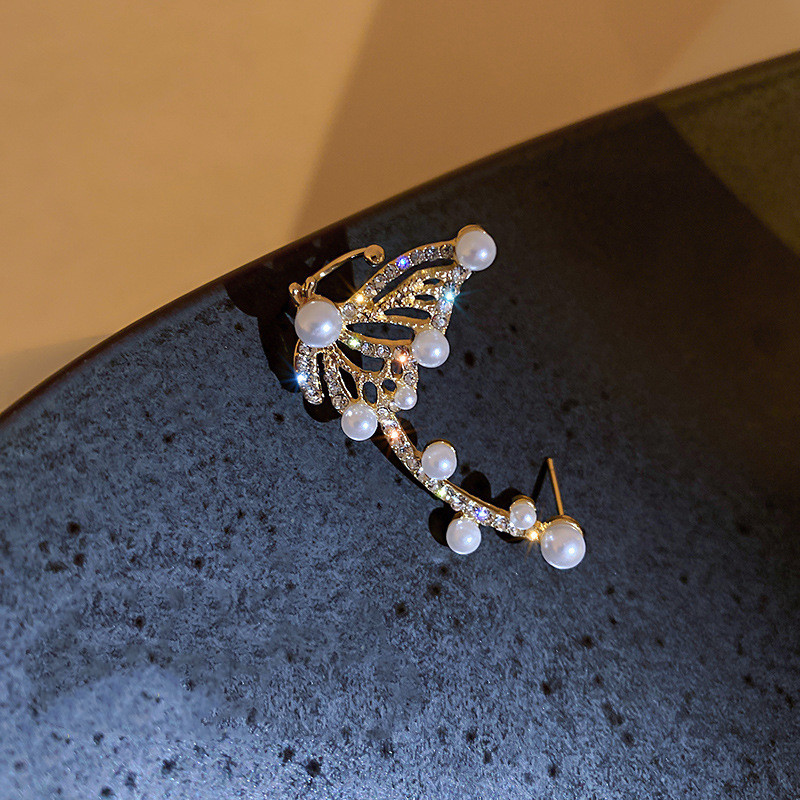 Name: 925 silver needle pearl diamond butterfly stud earrings (single)