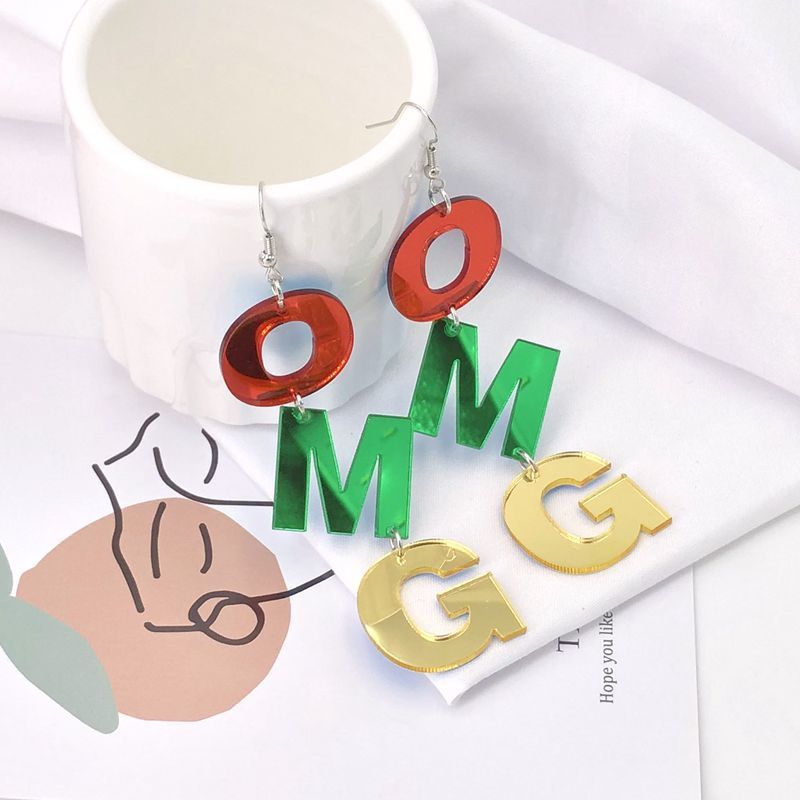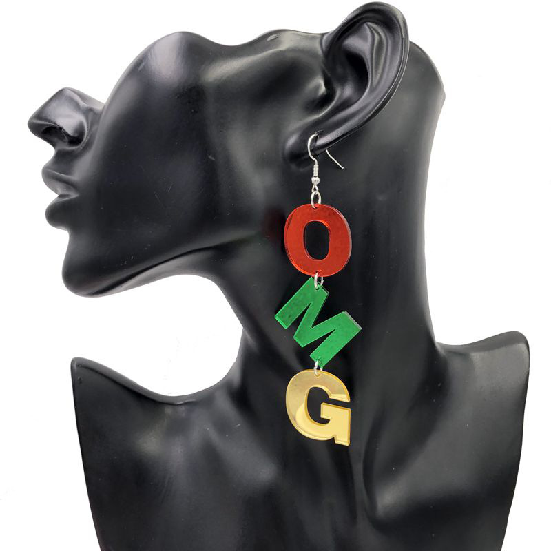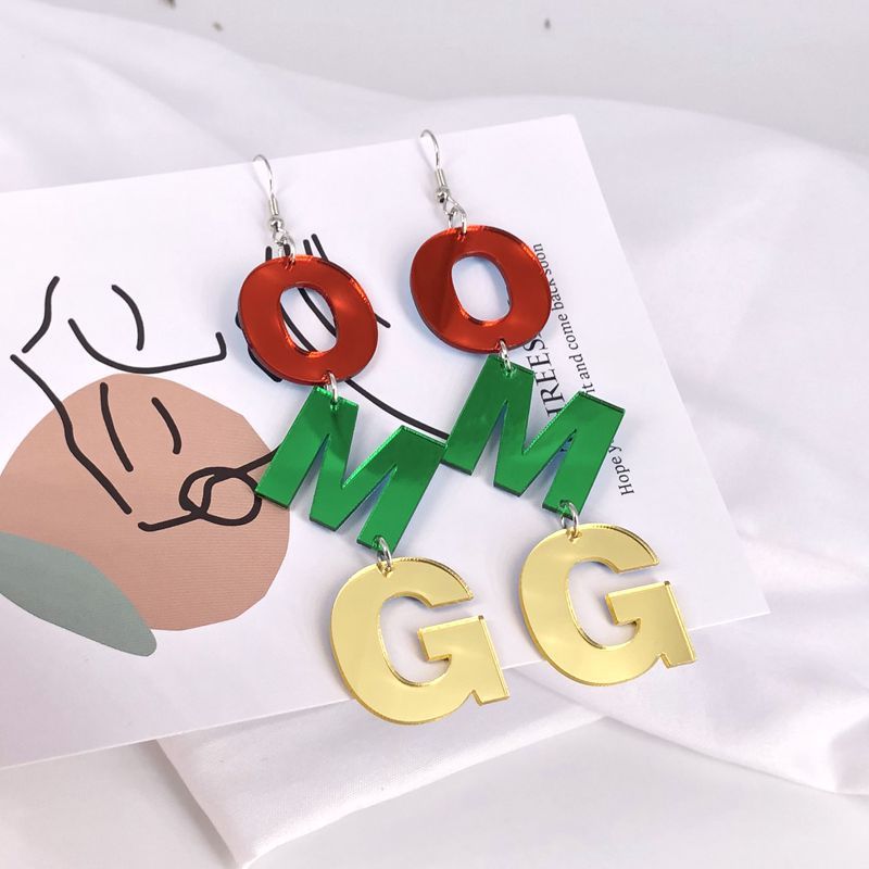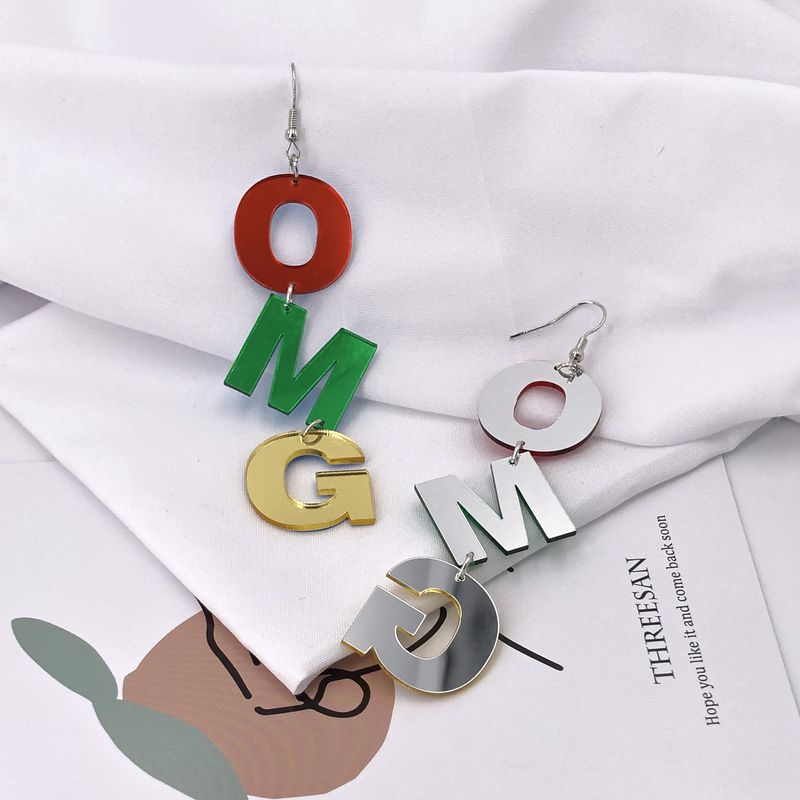 Acrylic Mirror Colored Letters Long Earrings
