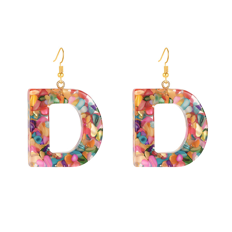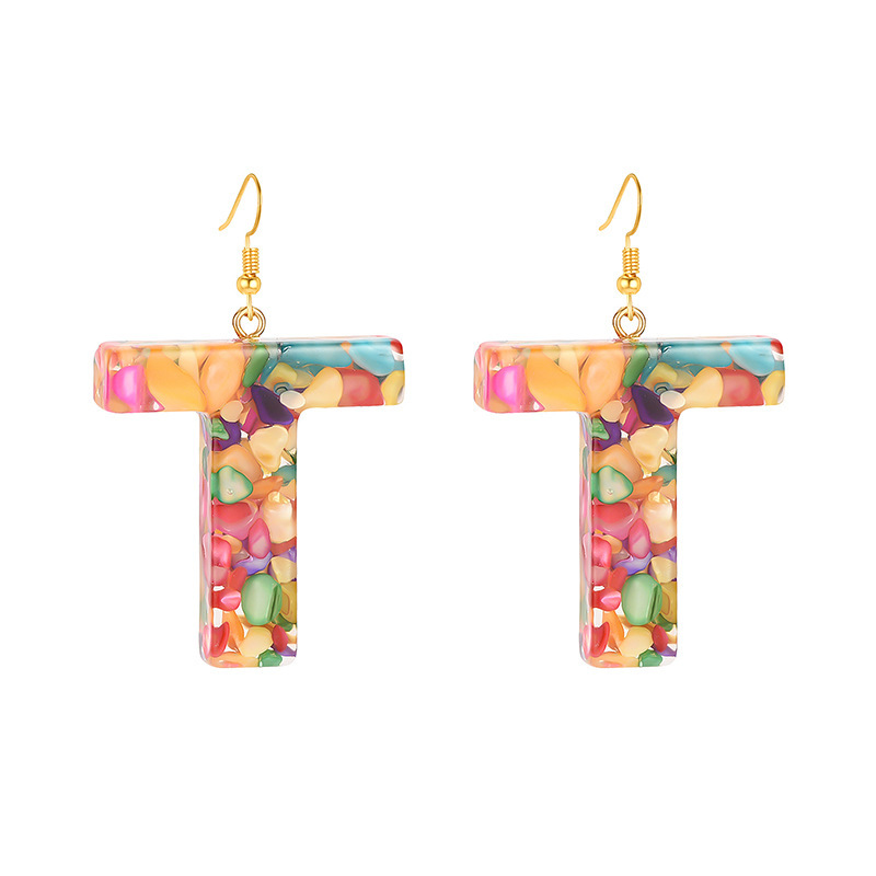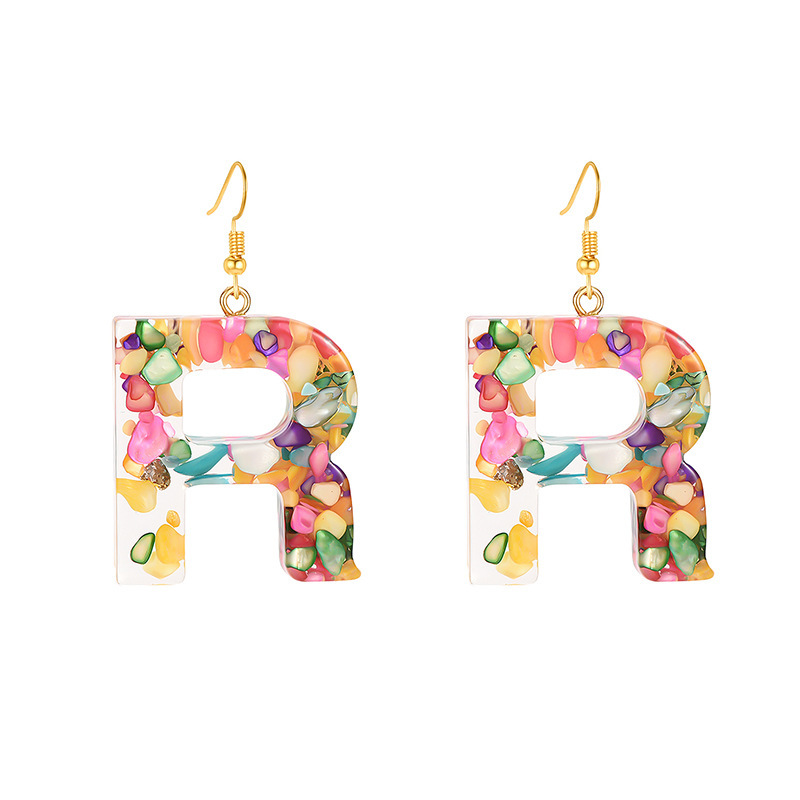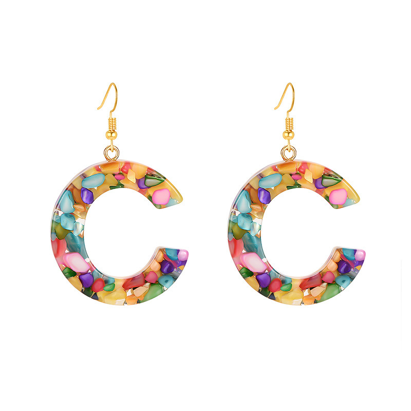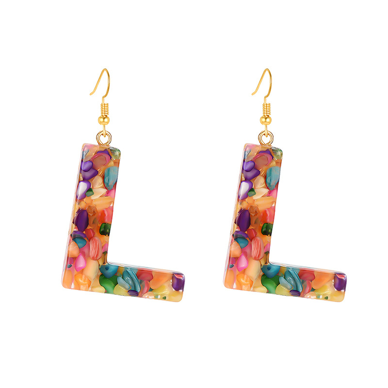 Colorful Resin Colored Shell Letter Earrings
