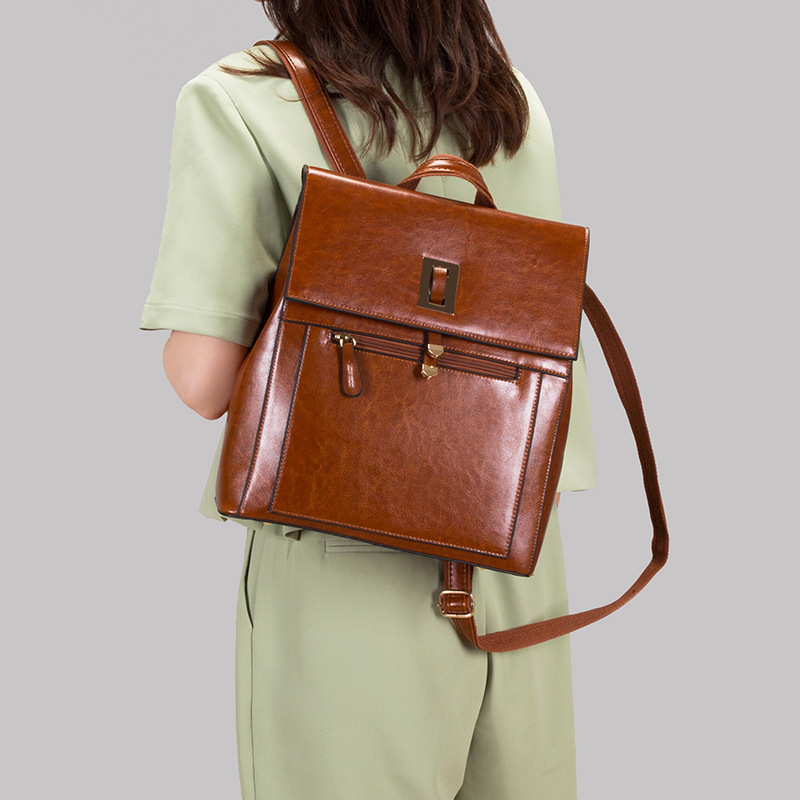 Fashion Texture PU Leather Large Capacity Backpack For Outdoor Leisure