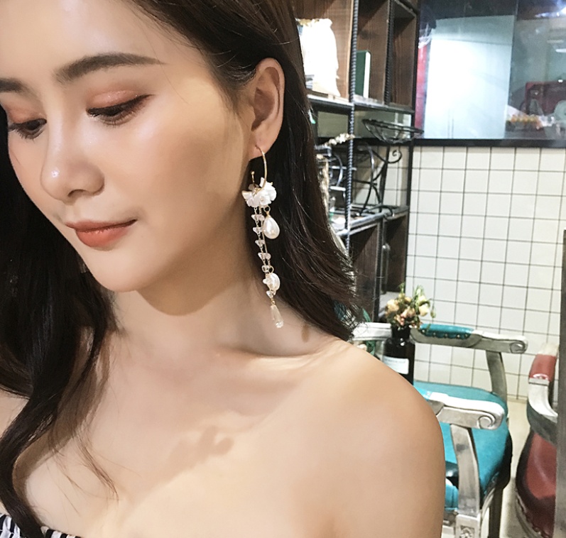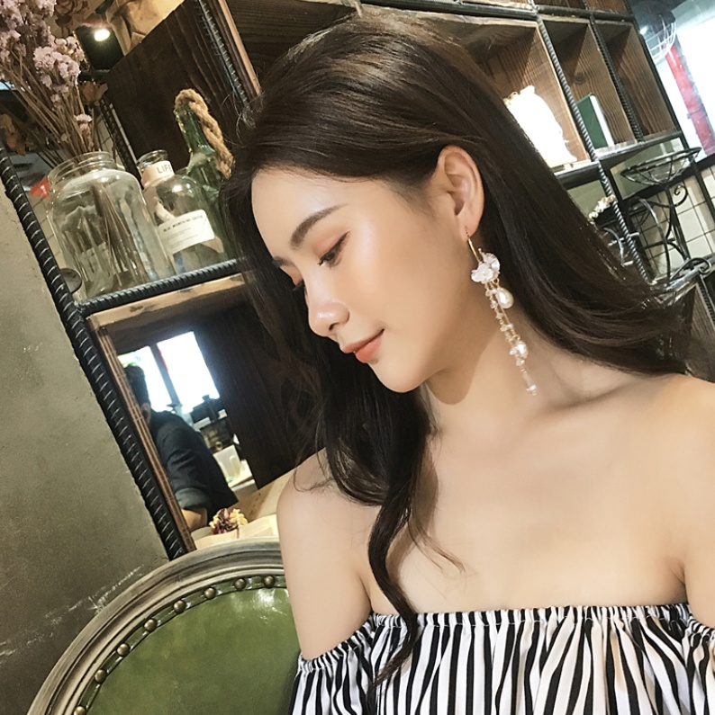 Color classification: flower pearl tassel earrings