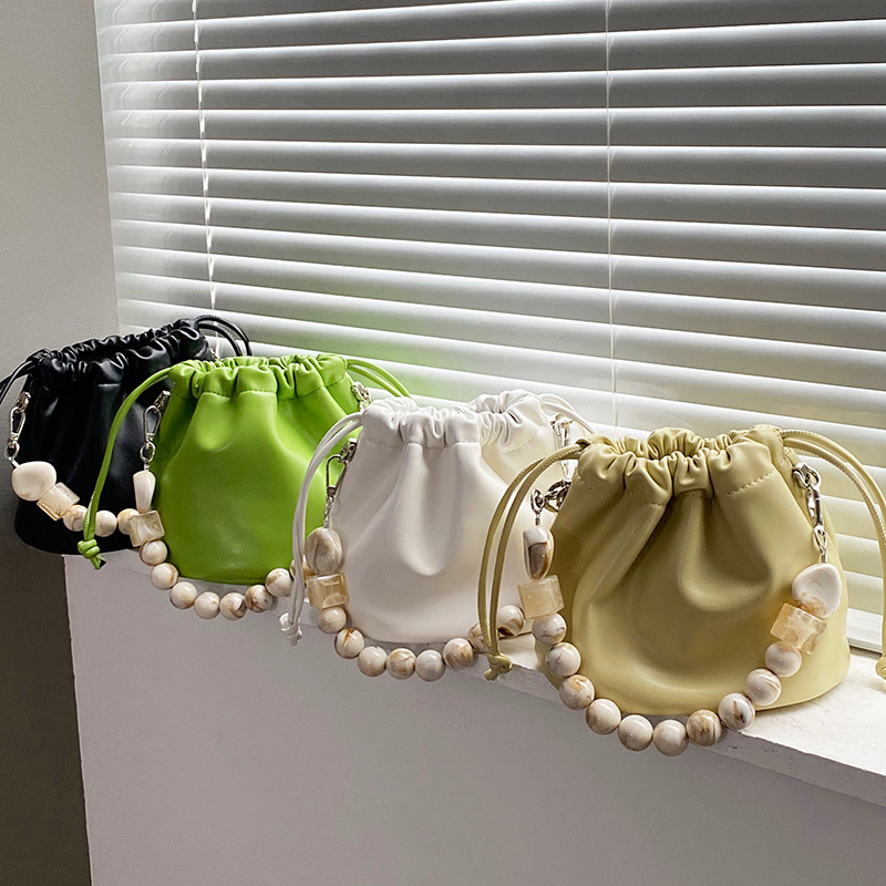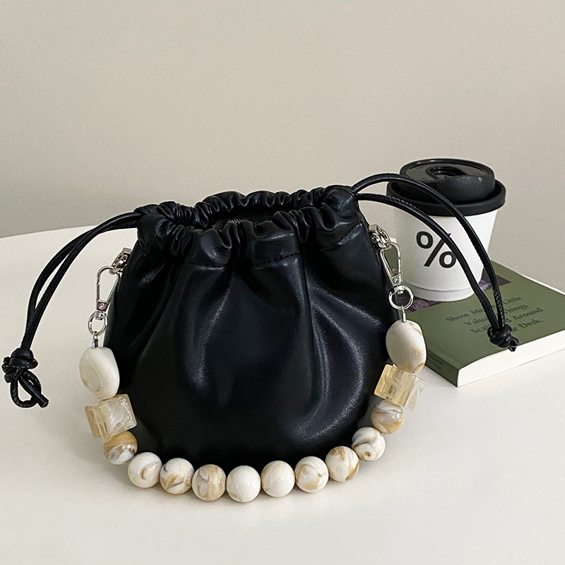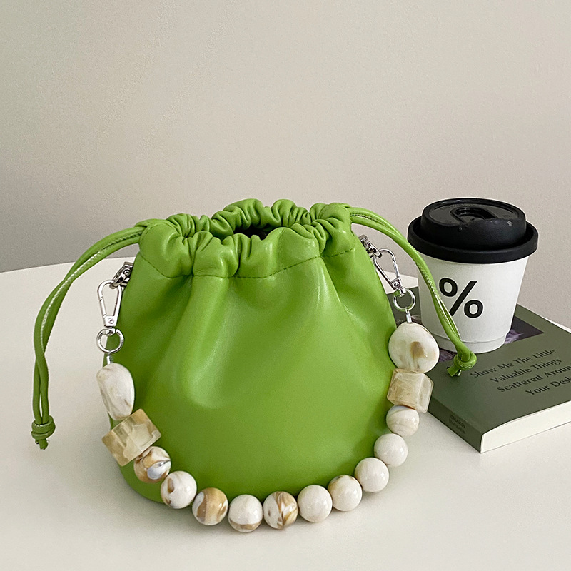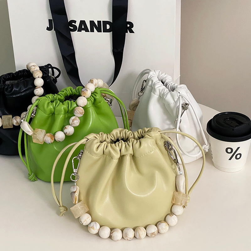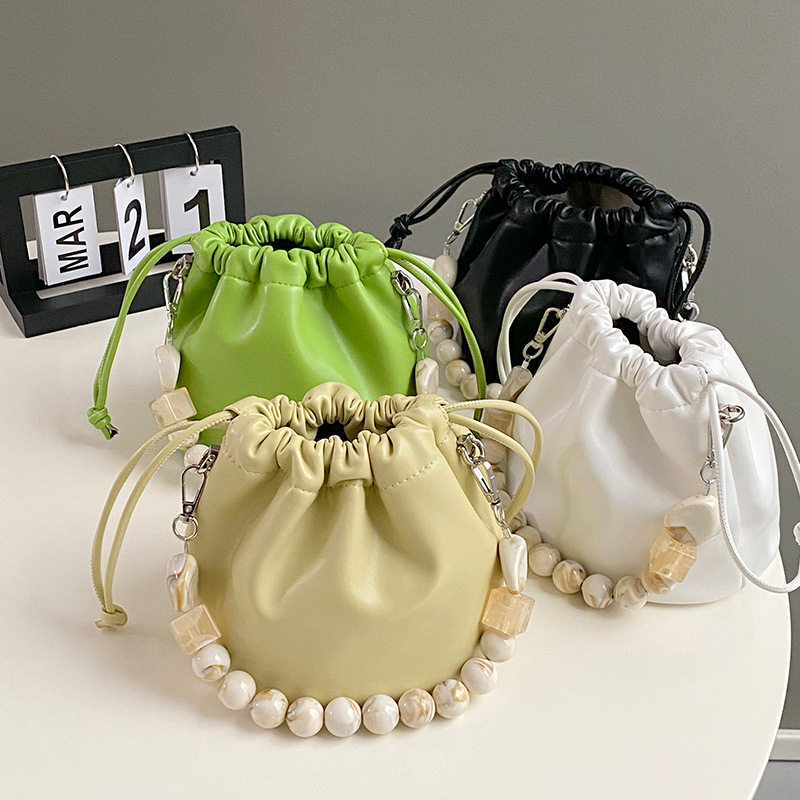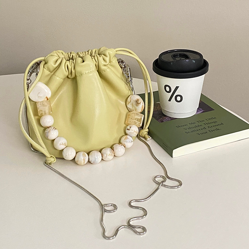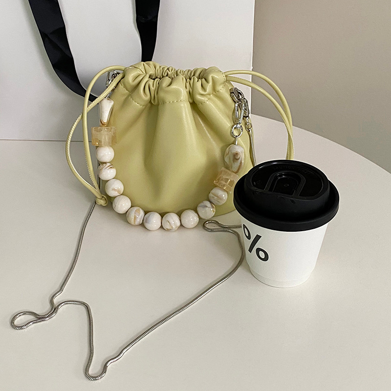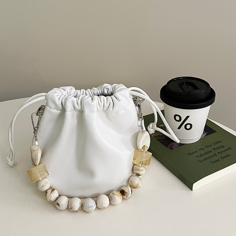 Gentle Cloud Bucket Drawstring Pleated Bead Chain Pouch