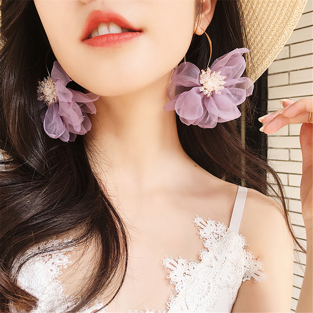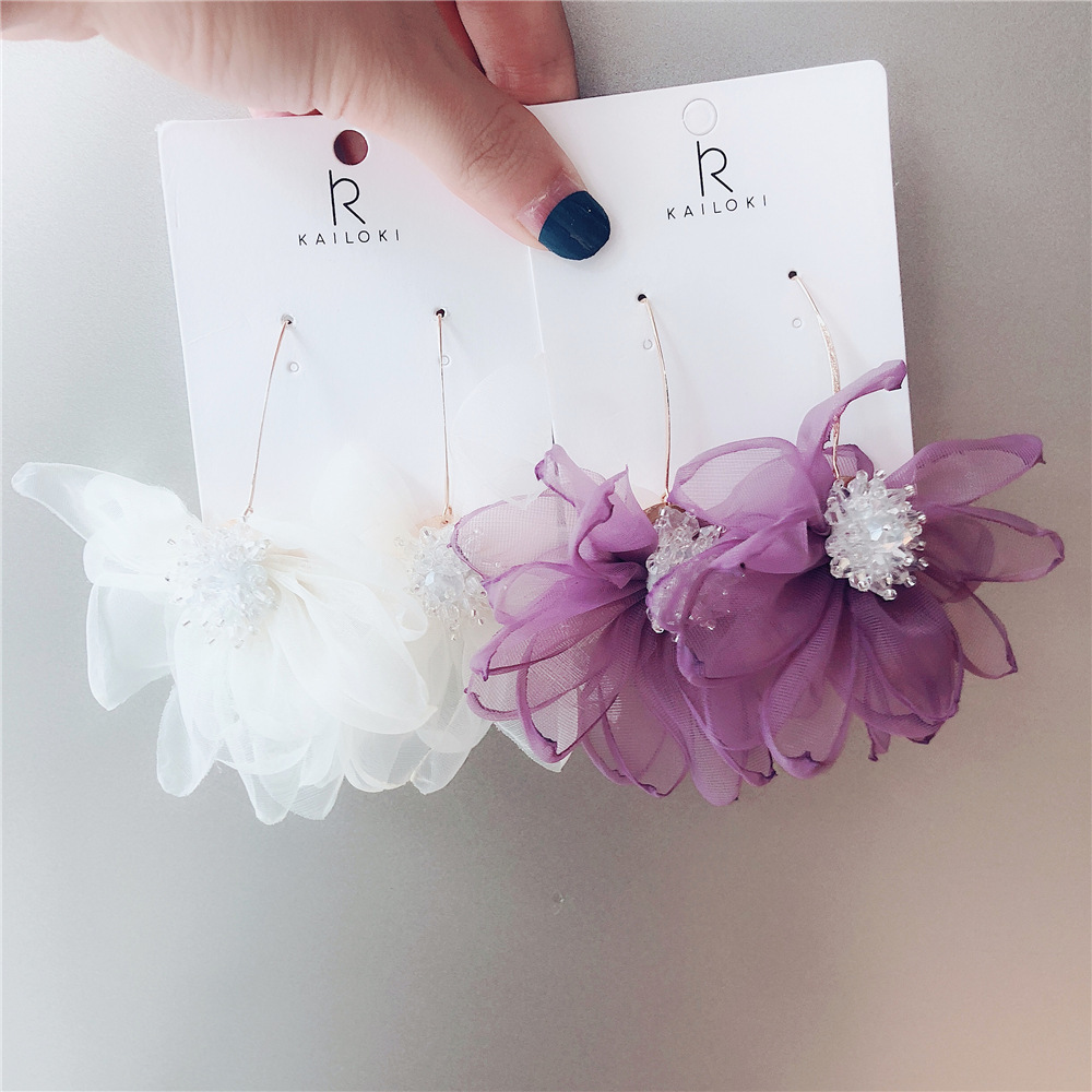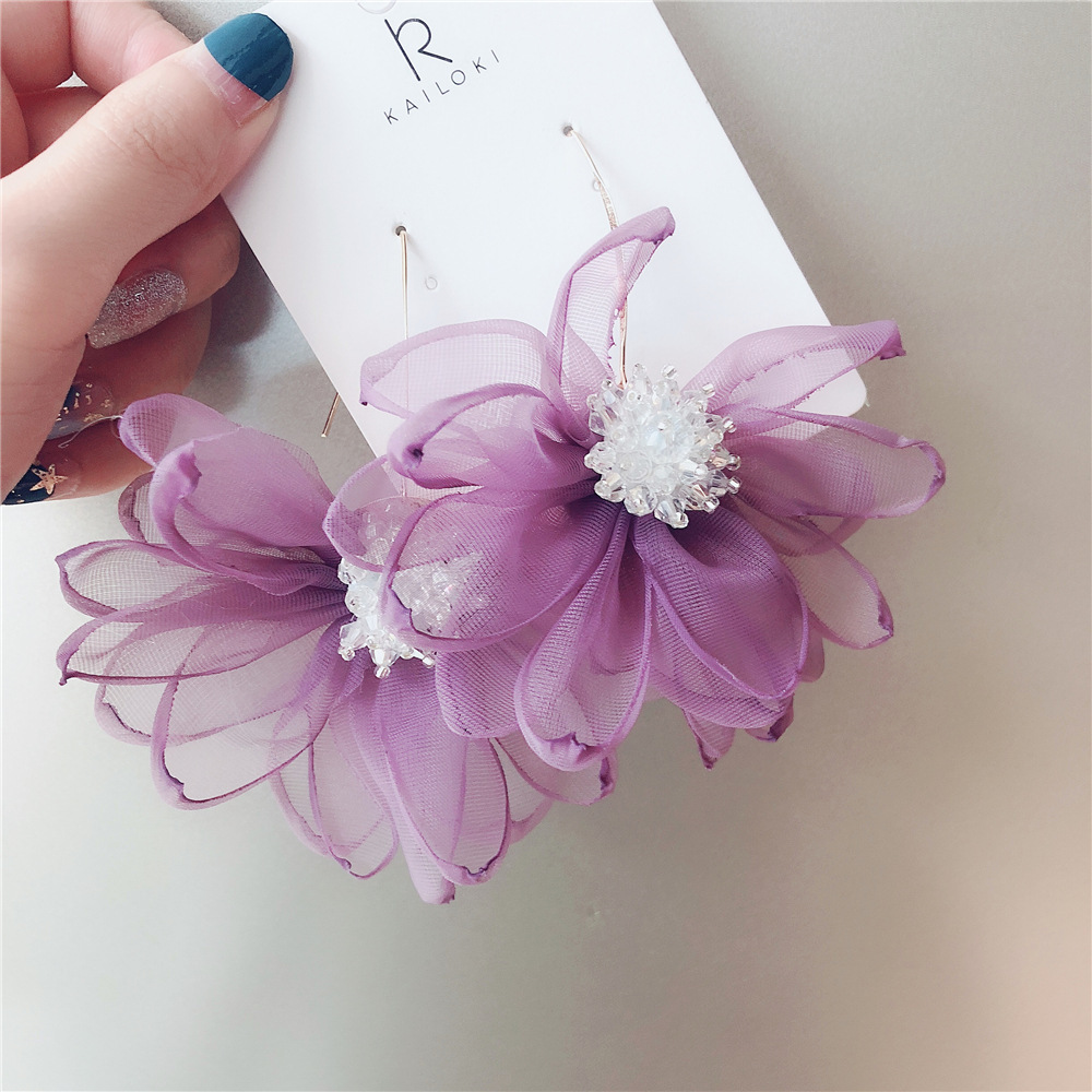 Gentle Mesh Fairy Flower Crystal Earrings