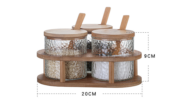 Specifications: 3 seasoning jars + 1 base + 3 spoons