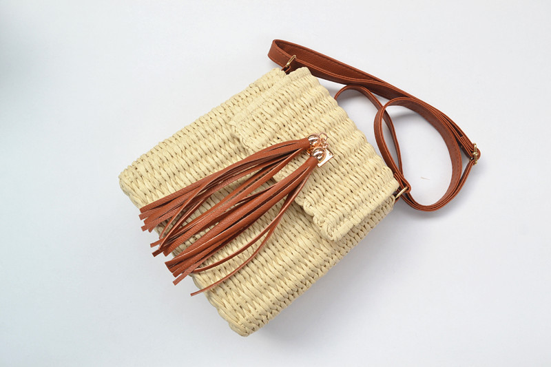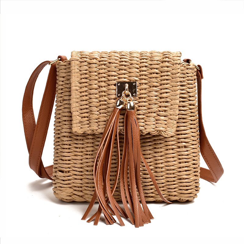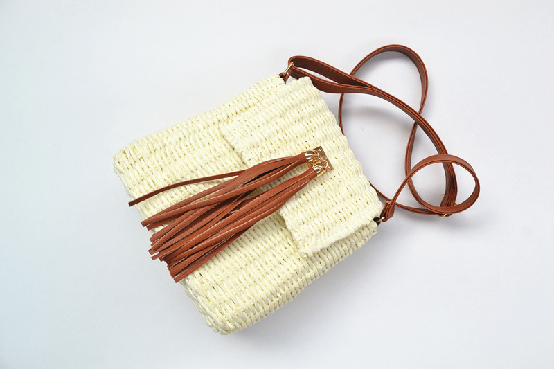 New Women’s Straw Woven Diagonal Paper Rope Tassel Bell Bag
