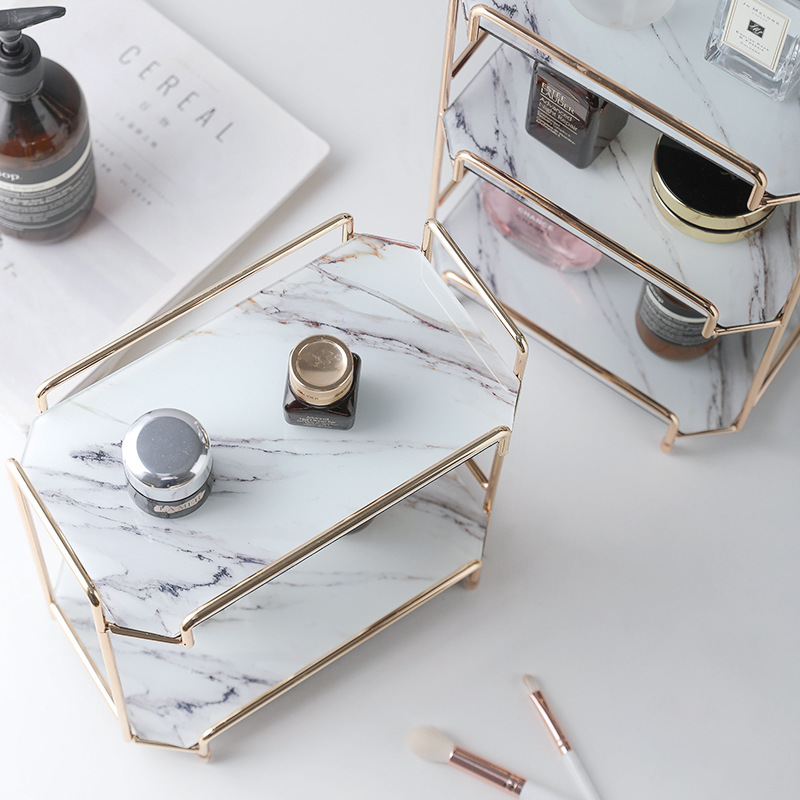 Color: 1style: Marble Pattern-Rectangular Double-Layer Glass Frame,