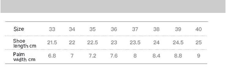 Size: 34, 35, 36, 37, 38, 39
